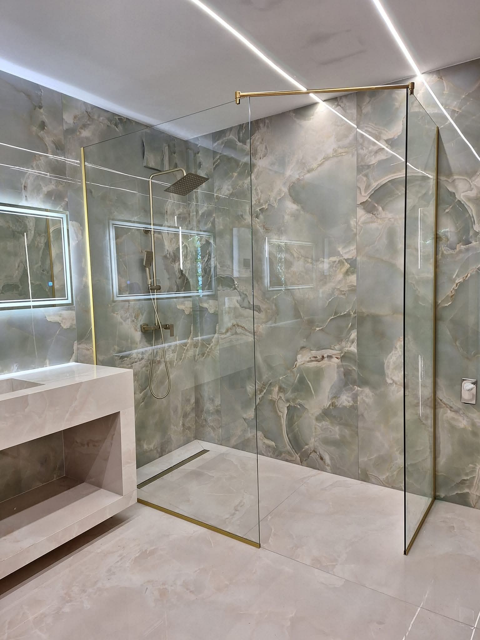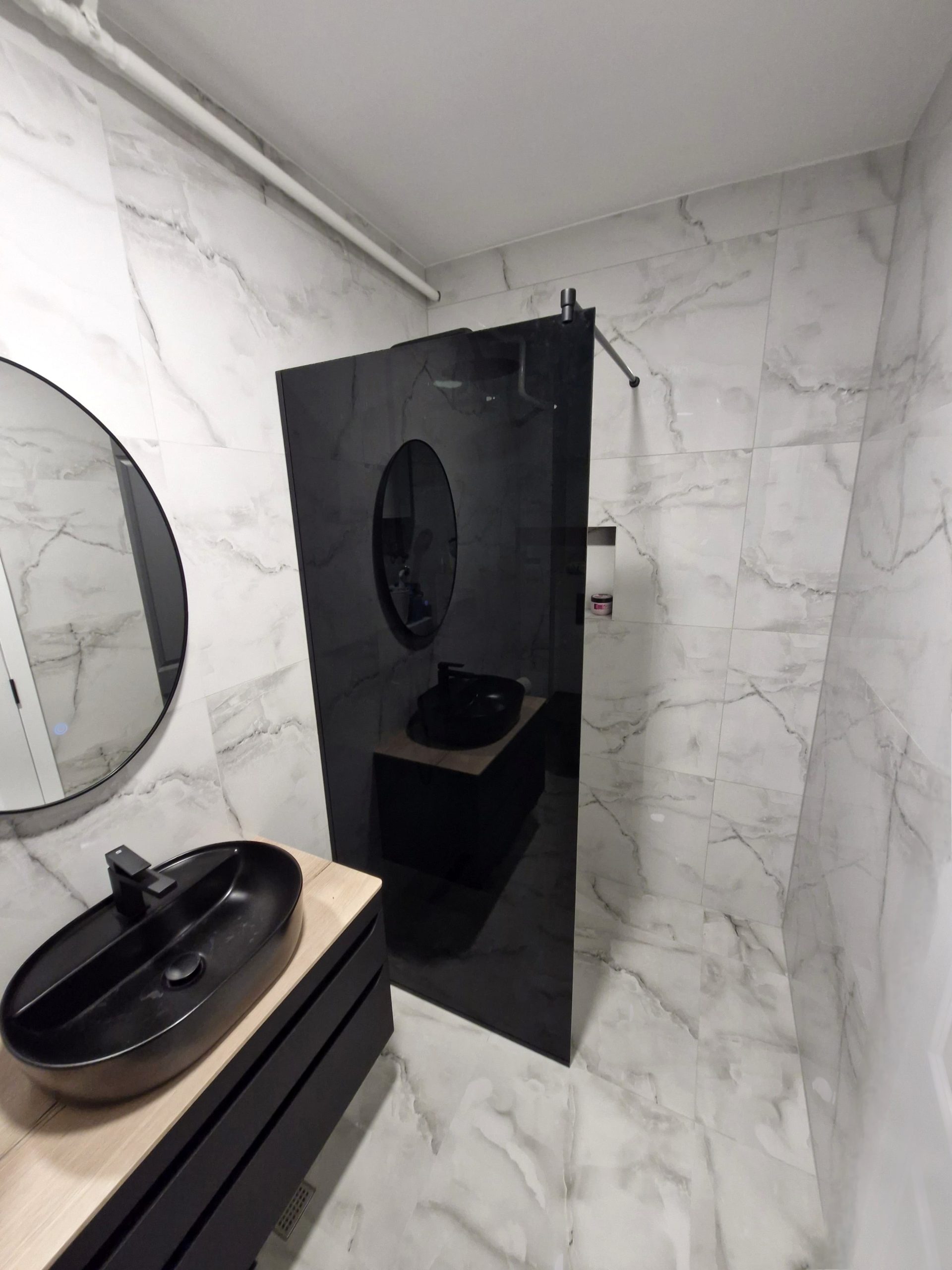 Minimalističko i elegantno rješenje za moderno kupatilo. Fiksne stijenke izrađuju se od 8 mm kaljenog stakla, dostupnog u varijantama Float, Parsol u više boja, Satinato ili pjeskareno sa različitim motivima. Svi okovi i profili su vrhunskog kvaliteta, izrađeni od provjerenih materijala posebno namijenjenih za upotrebu u vlažnim prostorima.