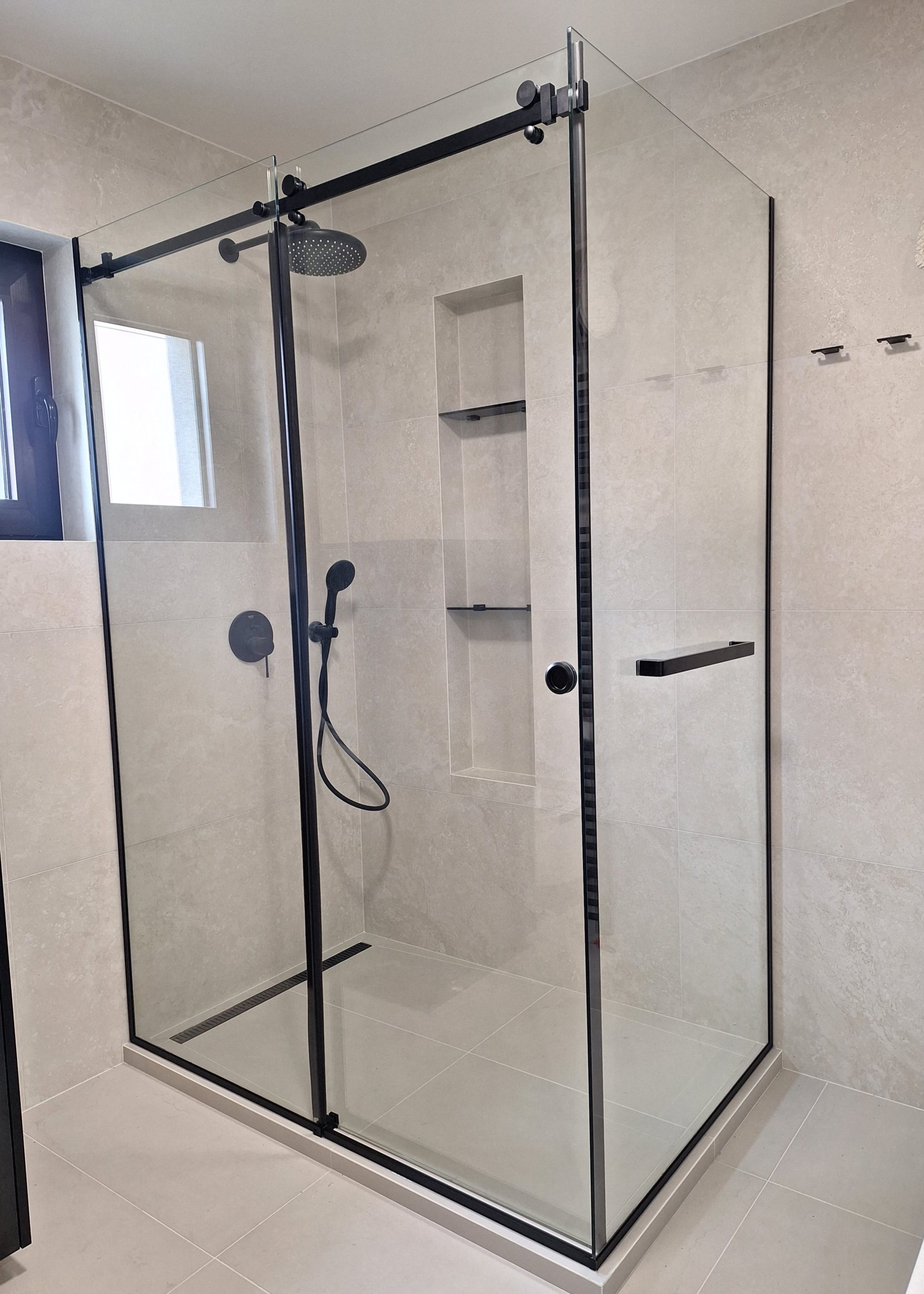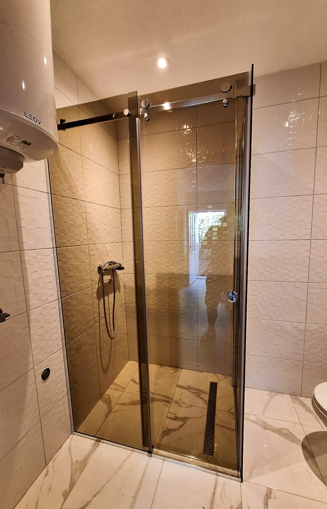 Izrađene od 8 mm kaljenog stakla (Float, Parsol, Satinato ili pjeskareno), sa kliznim sistemima koji omogućavaju tiho i lako otvaranje.